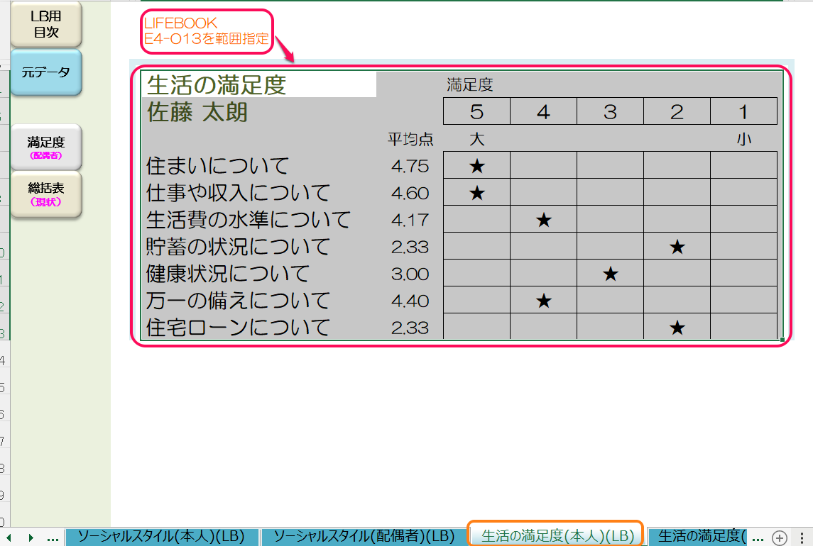 家族構成・6分野・こだわり・ソーシャルスタイル・生活の満足度・私の歴史・7つの期待